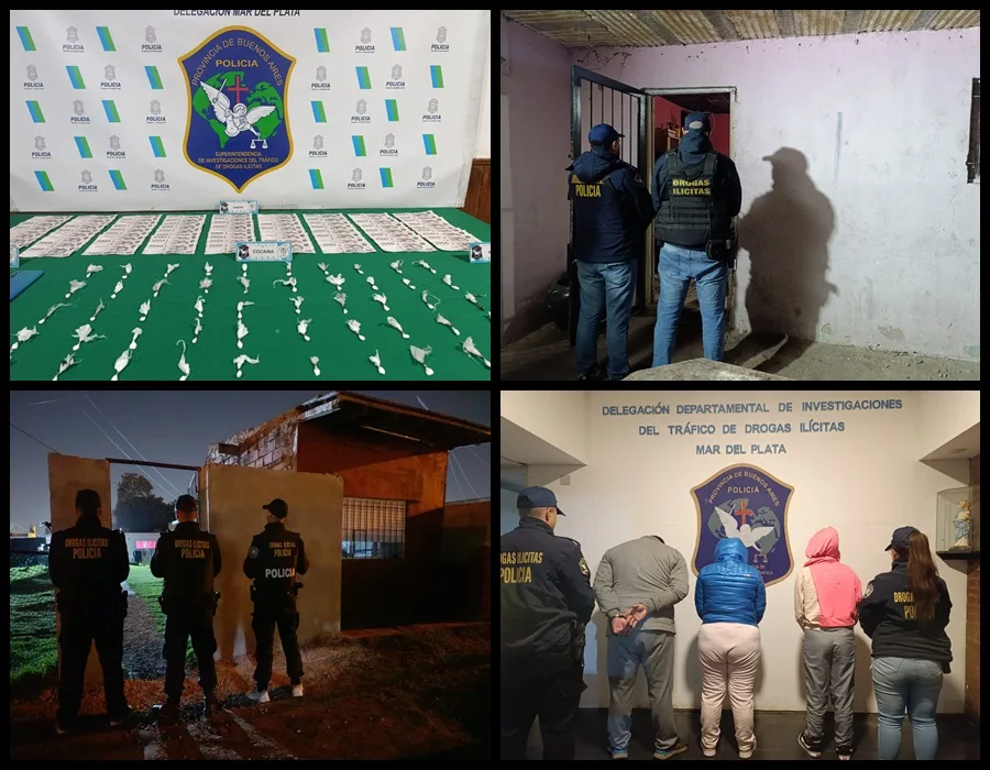 Un operativo realizado por personal de la Delegación Departamental de Investigaciones del Tráfico de Drogas Ilícitas Mar del Plata terminó con tres personas detenidas y el secuestro de una importante cantidad de cocaína fraccionada para la venta. El procedimiento ocurrió en el barrio San Martín, en una vivienda ubicada sobre García Lorca, entre Roque Sáenz Peña y Esteban Echeverría, según informaron fuentes policiales a Radio 10 Mar del Plata.