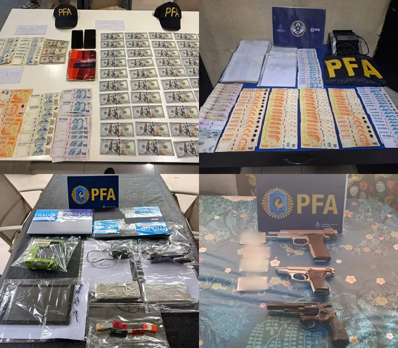 Además, se secuestraron dos armas de fuego, 19 teléfonos celulares, un camión, siete camionetas, ocho autos, tres motos, 14 computadoras, 27 pendrives, una billetera física Bitcoin, máquinas contadoras de billetes y otros elementos de interés.