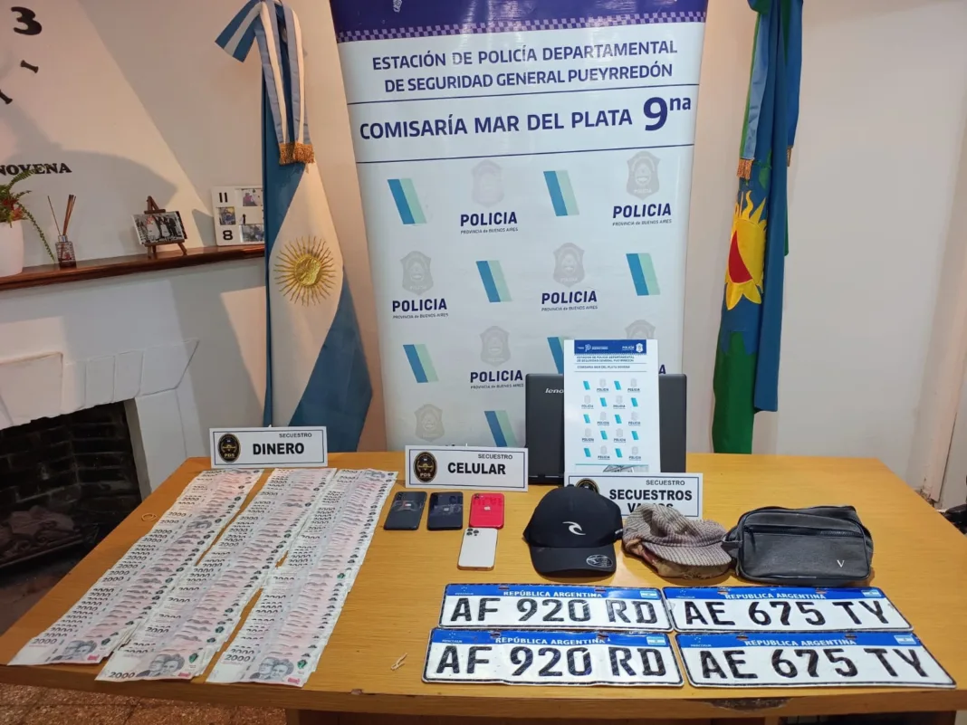 Durante el procedimiento se secuestró un Peugeot 208 blanco con patente trucha, que por su numeración registral tenía pedido de secuestro activo desde octubre de 2025. También se incautaron 300 mil pesos en efectivo, cuatro teléfonos celulares, dos gorras, una de ellas perteneciente a una de las víctimas.