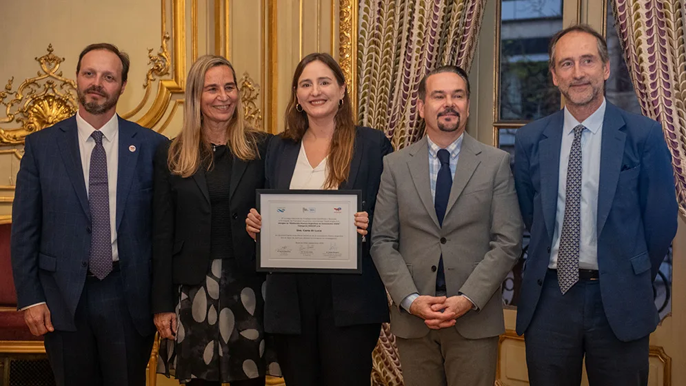 El acto de entrega se realizó en la Embajada de Francia en Buenos Aires, organizado por CONICET, el Institut français d’Argentine (IFA) y TotalEnergies. Di Luca fue premiada por su proyecto “Dispositivo híbrido para la remoción de micro(nano)plásticos en agua potable mediante fotólisis UVC/H2O2 y adsorbentes de bajo costo”, diseñado para enfrentar la creciente preocupación ambiental por los microplásticos en el agua potable.