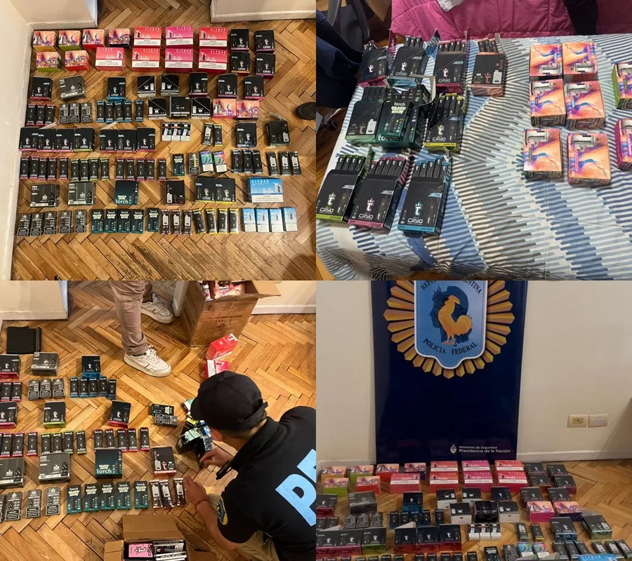 Según informaron fuentes oficiales, la investigación comenzó en agosto de este año tras una pesquisa de la División Precursores Químicos y Drogas Emergentes de la PFA. Los detectives identificaron una red que distribuía estos vapers prohibidos en todo el país.