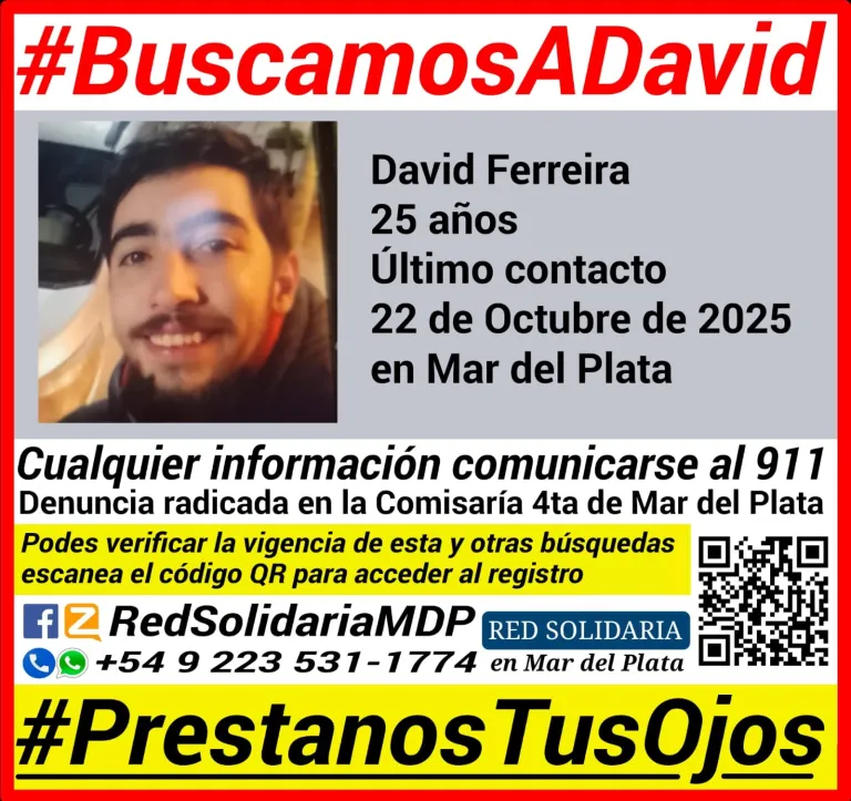 Cualquier información sobre su ubicación puede ser comunicada al teléfono 223 6897944. Las autoridades locales continúan trabajando para reconstruir el recorrido del vehículo y esclarecer las circunstancias de la desaparición.