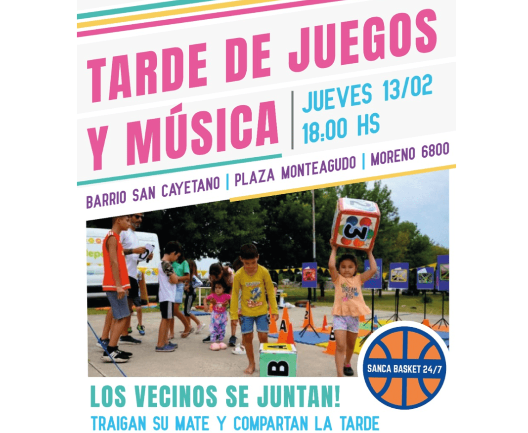 El próximo jueves 13 de febrero, se llevará a cabo una nueva edición de la Tarde de Juegos y Música en la Plaza Monteagudo, ubicada en Moreno 6800, una iniciativa impulsada por los vecinos con el apoyo del EMTUR.